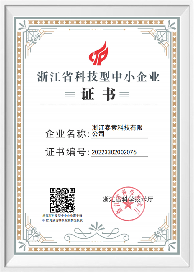 浙江省中小型科技企业证书