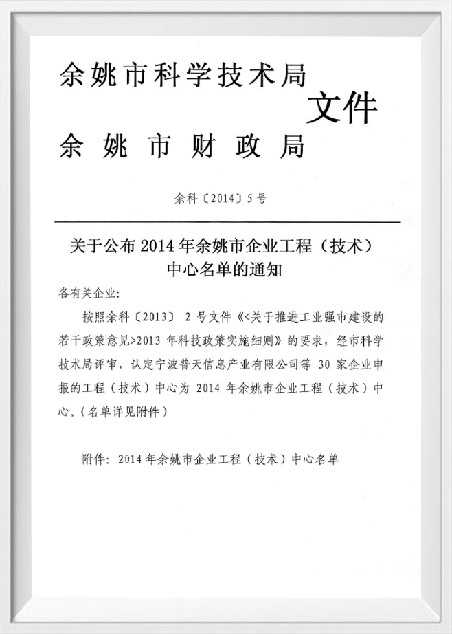 余姚工程技术中心同意文件