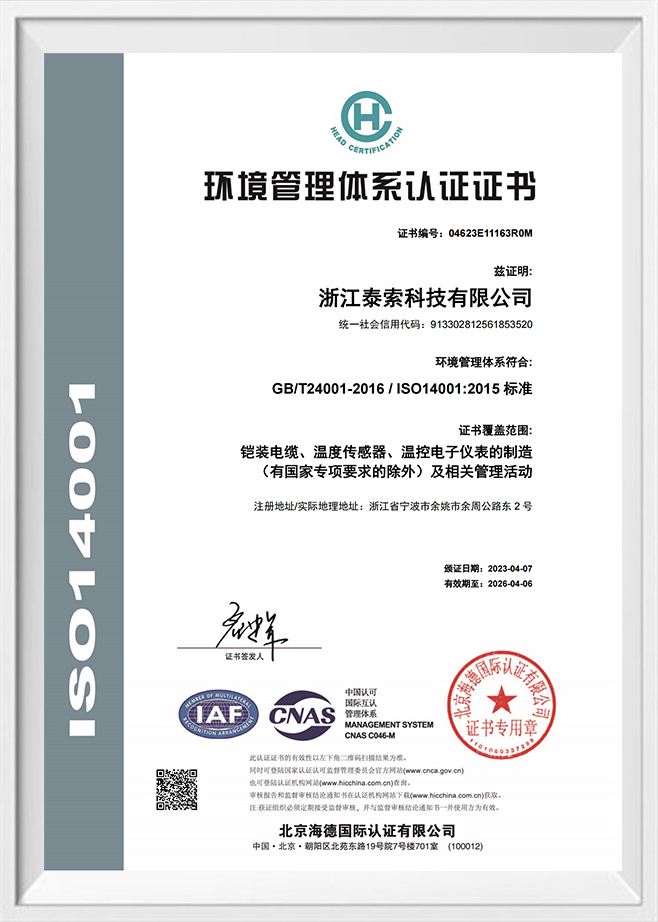 环境管理体系认证证书
