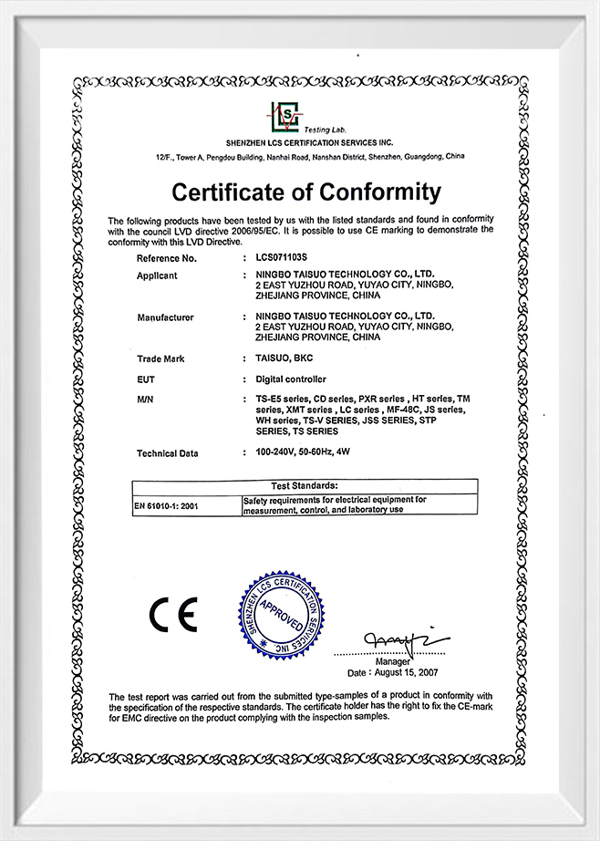CE合格证书